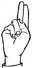 На ћирилици написано ЈУГОСЛАВ БЕКРИЋ састоји се из 14 слова [?]. Исписано ћириличном једноручном азбуком за глувонеме: